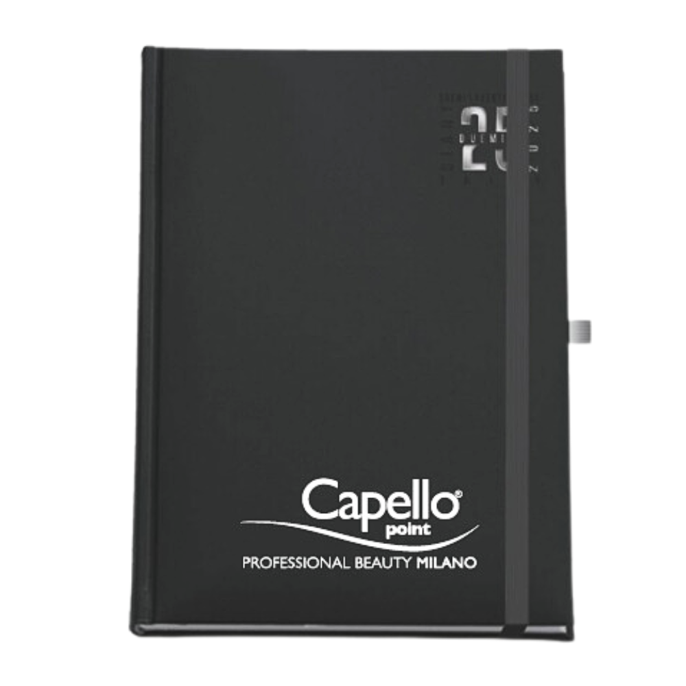 La nostra agenda giornaliera 2025, in elegante color nero con il logo Capello Point, è la compagna perfetta per organizzare la tua giornata!