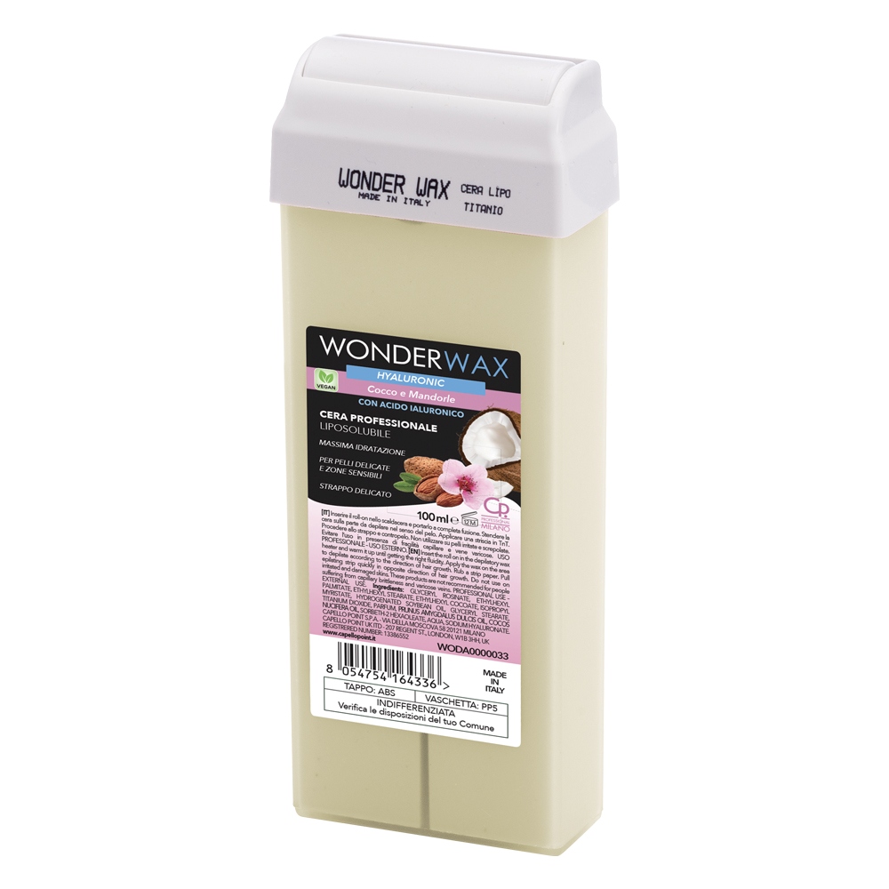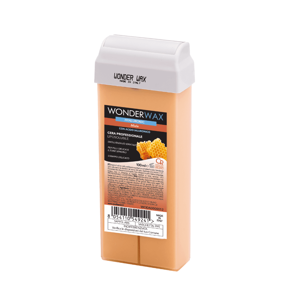 Wonder Wax Hyaluronic è la cera roll on liposolubile con aciodo ialuronico che garantisce una profonda idratazione della pella, rendendola forte ed elastica. L'acido ialuronico dona anche un effetto antiage che contrasta l'invecchiamento cutaneo.