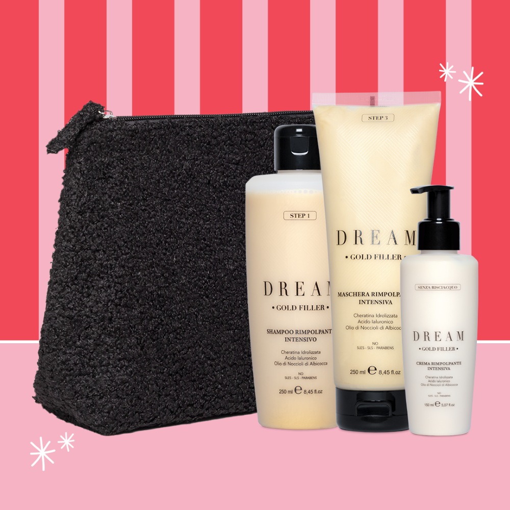 Rigenera e illumina i tuoi capelli con il kit Dream Gold Filler, un trattamento completo con azione rimpolpante e nutriente per una chioma morbida, setosa e visibilmente più sana.