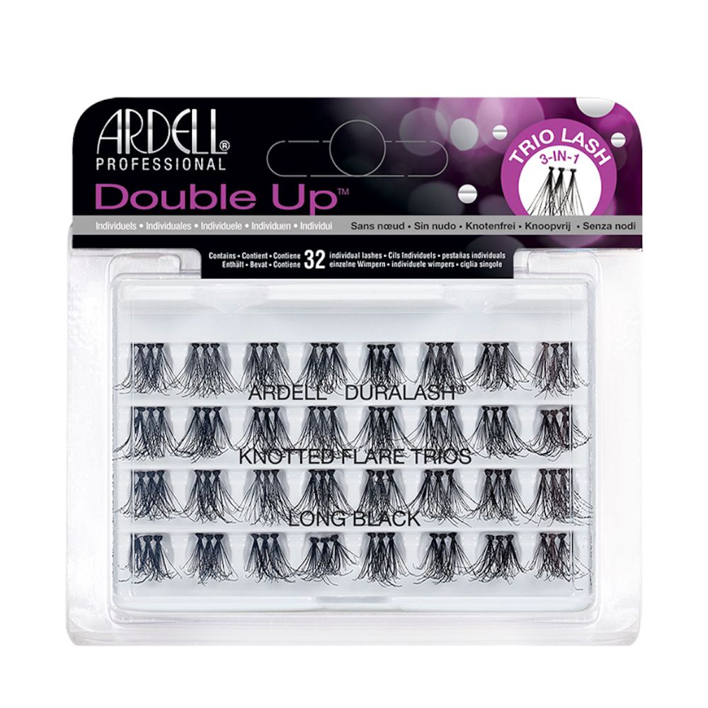 • La ciglia Double Trio è composta da 3 ciuffi uniti da una fascia trasparente per facilitare l’applicazione di ogni singola ciglia