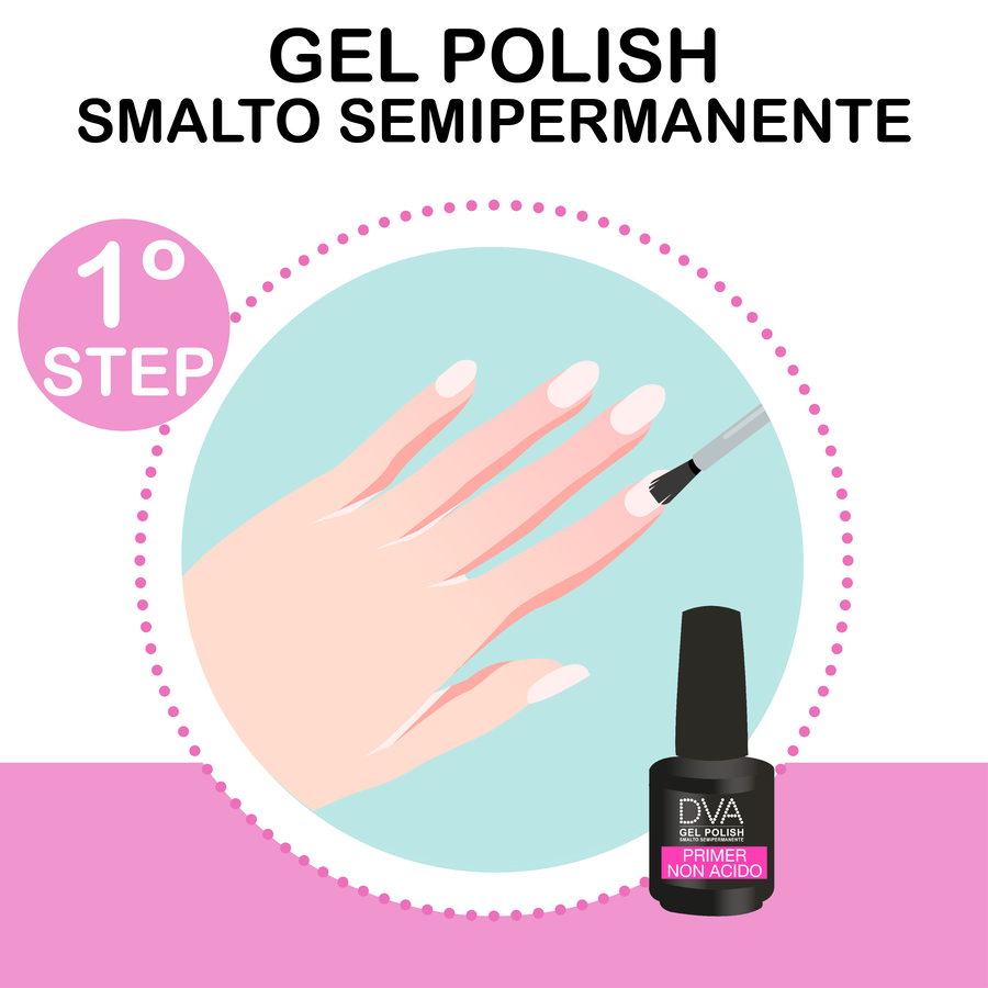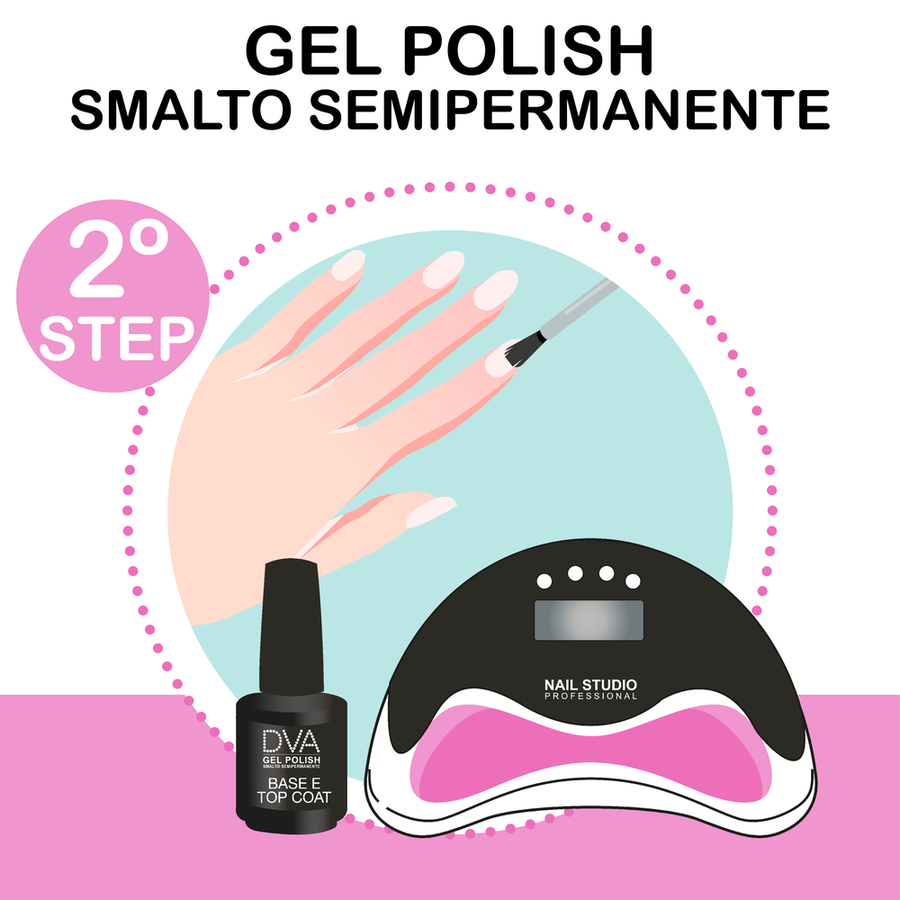 Per ottenere il miglior risultato possibile, applica lo smalto semipermanente Gel Polish DVA seguendo questi step: