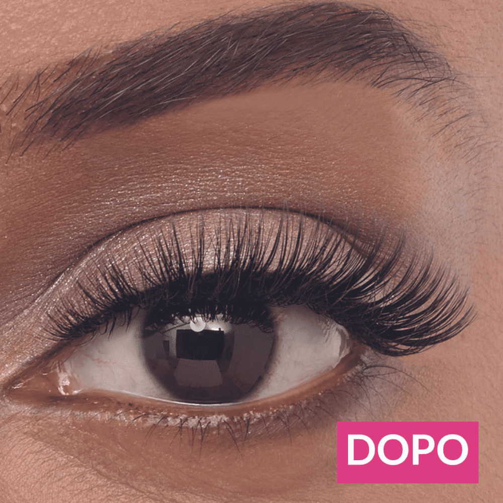 Queste ciglia finte scure, segmentate e piene aiutano ad incorniciare perfettamente lo sguardo.
