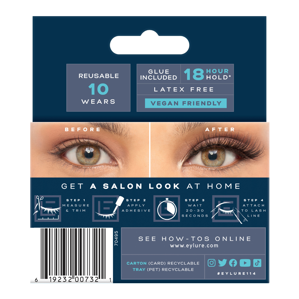 Ottenere un Russian curl look estremo non è mai stato così facile con la nuova gamma di Salon Extension di Eylure.Ottieni l'effetto delle extensions alle ciglia senza prenotare appuntamenti in costosi saloni di bellezza! N°114 è un modello di ciglia finte estremamente incurvate, gli strati di ciuffetti sono incrociati e luminosi.