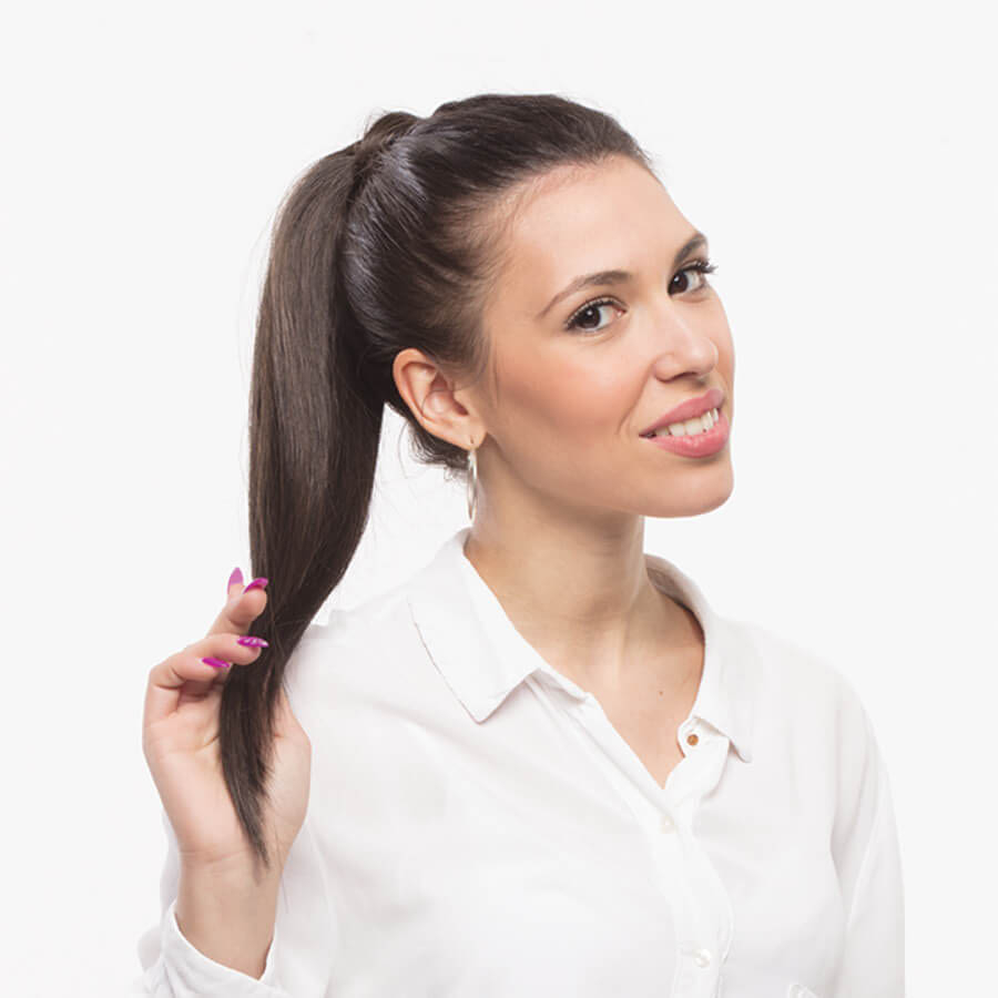 La caratteristica più interessante dell’extension coda liscia è la possibilità di renderla mossa o riccia attraverso l’utilizzo di piastre, phon e ferri arricciacapelli senza correre il rischio di bruciarla e/o danneggiarla; ti basta semplicemente non superare la temperatura massima di 190°C!