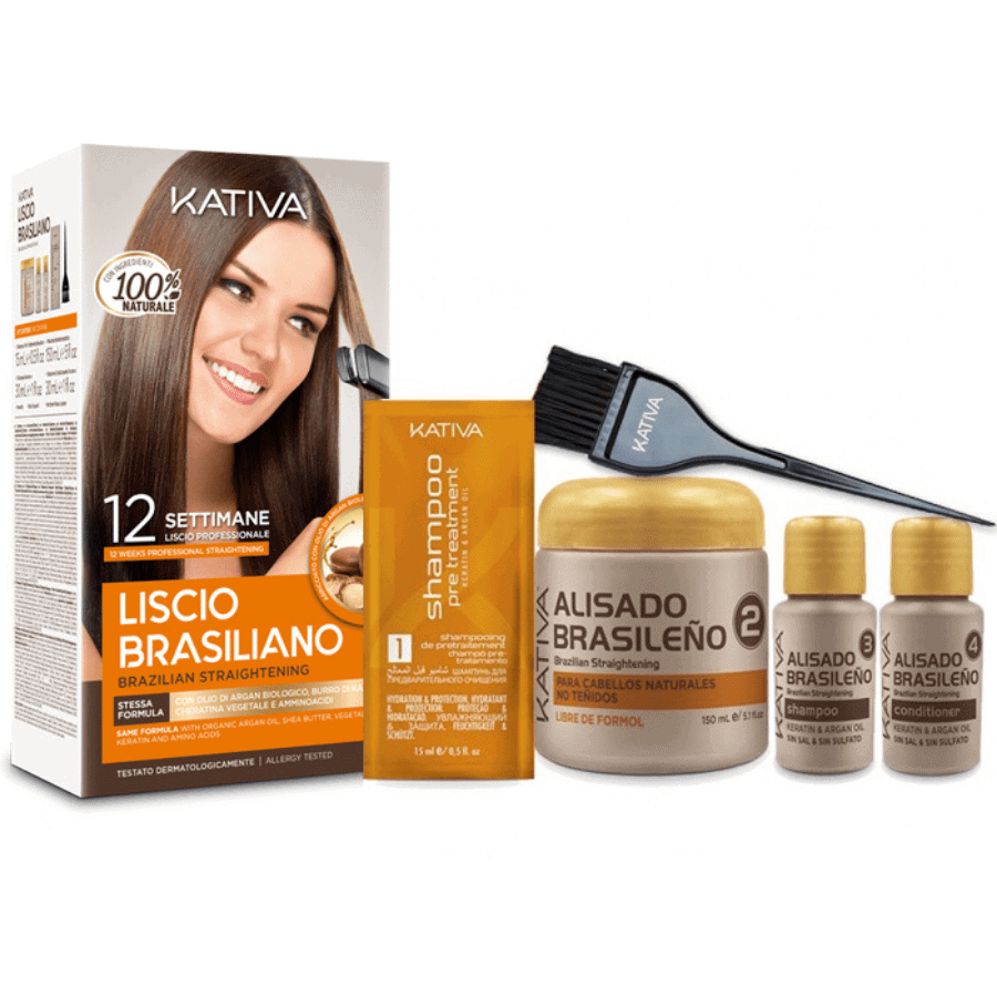 Regala alla tua chioma una coccola di benessere ottenendo, al tempo stesso, uno styling perfettamente liscio a lunga durata con i prodotti contenuti nel Kit Stiratura Brasiliana Liscio Perfetto Kativa: