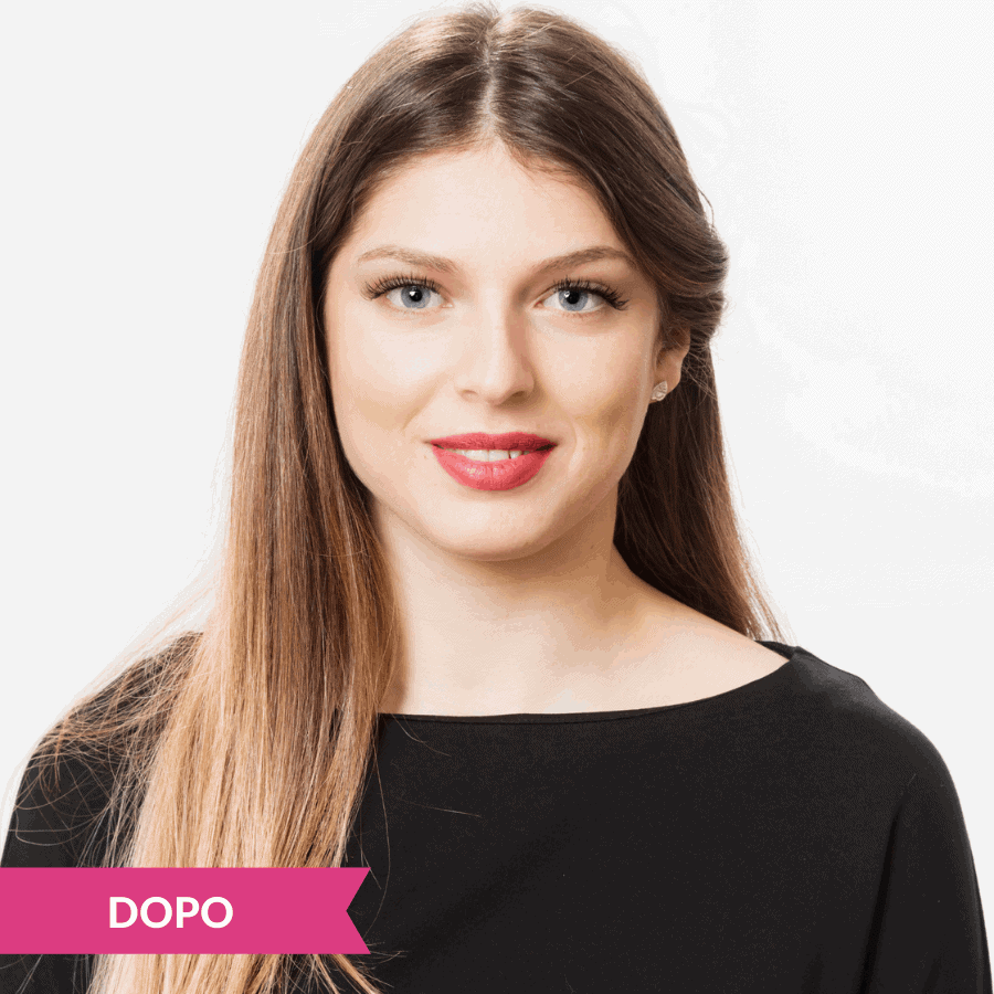• Allineare le ciglia finte all'attaccatura delle ciglia naturali e, se necessario, tagliare la parte in eccesso verso l'esterno