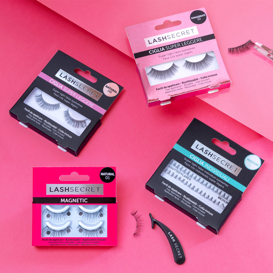 • Rimuovere lo strato di colla delle ciglia finte e riporle nella confezione