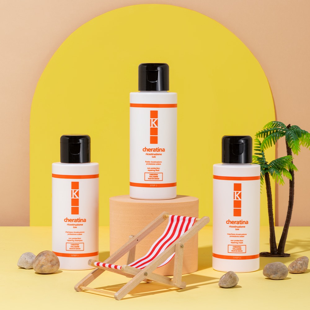 La maschera ricostruzione protezione solare K-Cheratina ripara il capello in profondità, donando struttura e idratazione. La formula a base di cheratina ed il collagene permette di ricostruire il capello, proteggendolo dall’azione del sole e della salsedine. L’olio di cocco apporta nutrimento, per un capello sano, morbido e lucente.