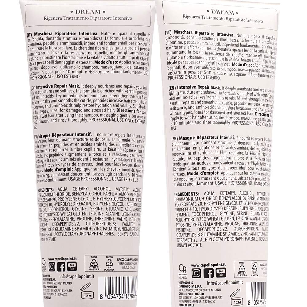 Modo d’uso: Applicare sui capelli bagnati, dopo aver utilizzato lo shampoo, massaggiando delicatamente. Lasciare in posa per 5-10 minuti e risciacquare abbondantemente. USO PROFESSIONALE. USO ESTERNO.