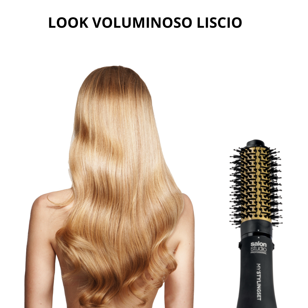 • 1 Spazzola rotonda volumizzante per ottenere volume e brillantezza in un solo gesto;