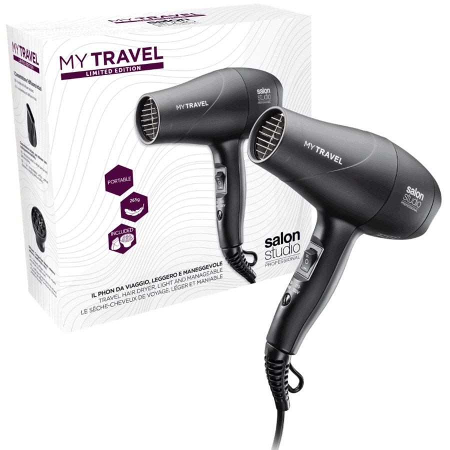 • My Travel è il phon da viaggio ideale da portare sempre con te (in borsa o in valigia) grazie alle dimensioni ridotte