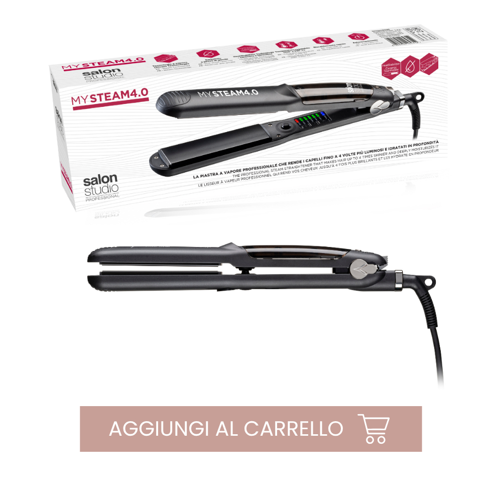 Per un effetto liscio impeccabile puoi utilizzare la MySteam 4.0 di Salon Studio Professional che, grazie alla Tecnologia HeatStabilizer garantisce risultati impeccabili anche sui capelli crespi e ribelli, distribuendo il calore in maniera omogenea e uniforme.