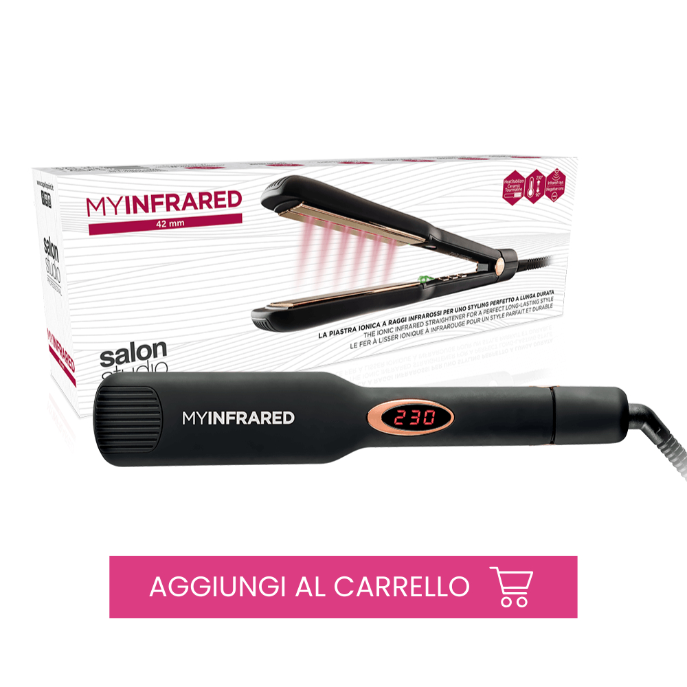 • utilizzare solo styling tool che rispettino le esigenze del capello e che non danneggino la chioma per via dell’eccessivo calore. A tal proposito si consigliano il Mystic Oxygen Technology Phon e la MyInfrared Piastra a Infrarossi, entrambi a marchio Salon Studio Professional, che sfruttano l’azione degli ioni negativi per rendere la chioma morbida e idratata contrastando, al contempo, l’effetto crespo.