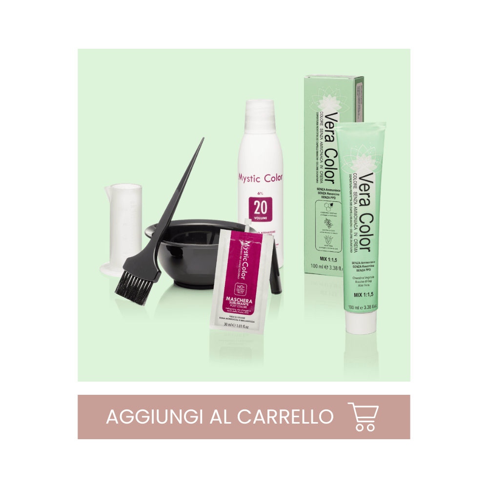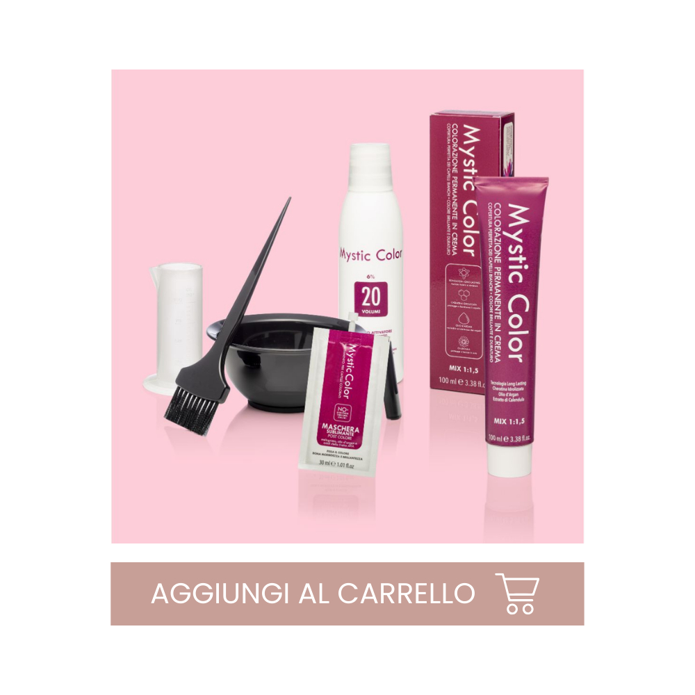 Proprio per questo, il primo passo da compiere sta nell’acquisto di un set che ti consenta di coprire i capelli bianchi in totale sicurezza, anche in casa, mettendoti a disposizione tutto l’occorrente necessario per ottenere il miglior risultato. A questo proposito, non perderti il Set colorazione professionale Mystic Color, appositamente pensato per chi desidera tingere i capelli tra le mura domestiche senza danneggiare la propria chioma, così composto: