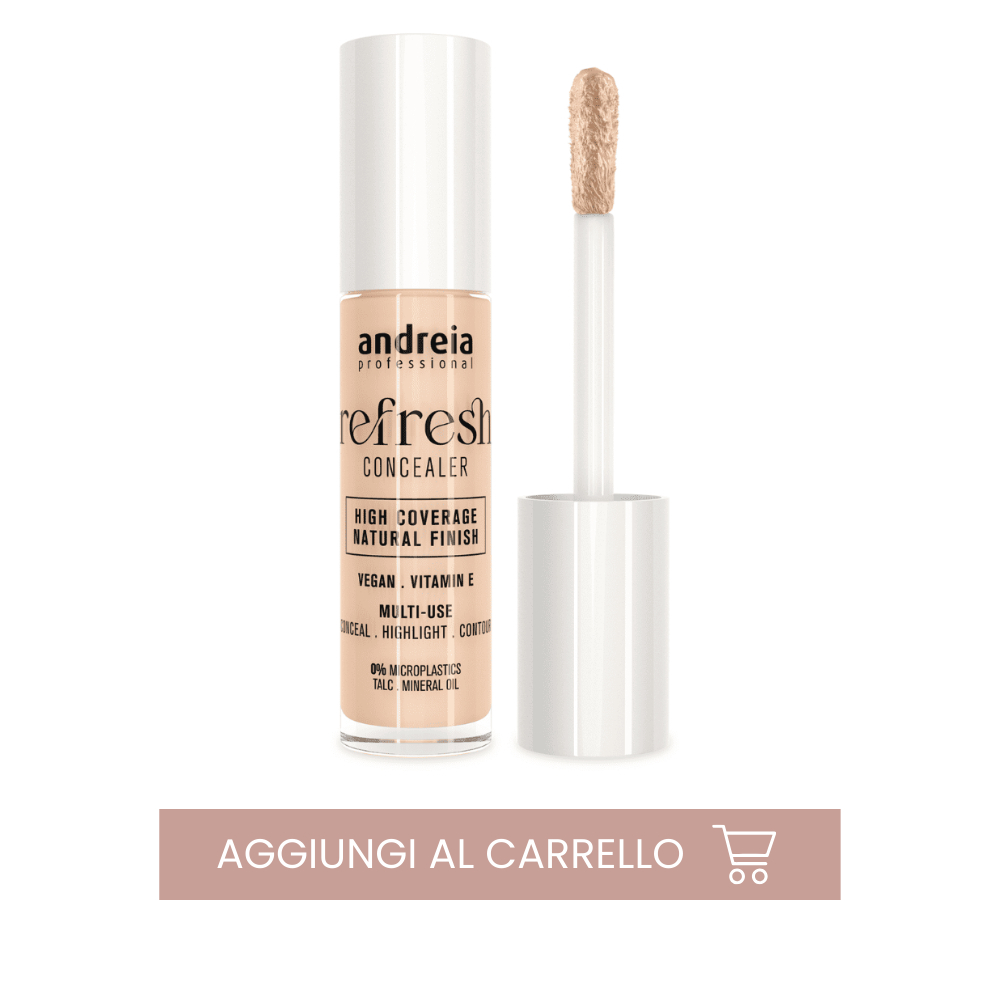 Dopo aver uniformato il tono generale con il fondotinta, è necessario intervenire sulle aree specifiche che richiedono una correzione mirata, come occhiaie, rossori localizzati o piccoli inestetismi. Il Refresh Concealer di Andreaia Professional è un alleato indispensabile in questa fase: si tratta di un correttore ad alta copertura arricchito con vitamina E e sodio ialuronato, che garantisce idratazione e una protezione antiossidante costante mentre nasconde efficacemente le discromie. La sua versatilità lo rende un prodotto "must-have", tanto che può essere declinato in diverse tecniche: