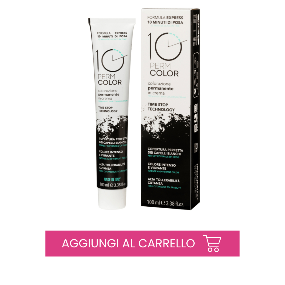 La colorazione permanente in crema 10PERM è realizzata con la formula più all’avanguardia presente attualmente sul mercato a base di ammoniaca, che le consente di rientrare tra i prodotti più performanti sul mercato per quanto riguarda le colorazioni cosiddette “rapide”. Non solo: grazie all’innovativa Time Stop Technology, l’ossidazione si ferma dopo 10 minuti - appunto - dall’applicazione, durante i quali si sprigiona tutto l’eccezionale potere dei pigmenti concentrati contenuti all’interno, garantendo una copertura intensa e omogenea senza correre il rischio di dar vita a tonalità diverse da quelle desiderate.