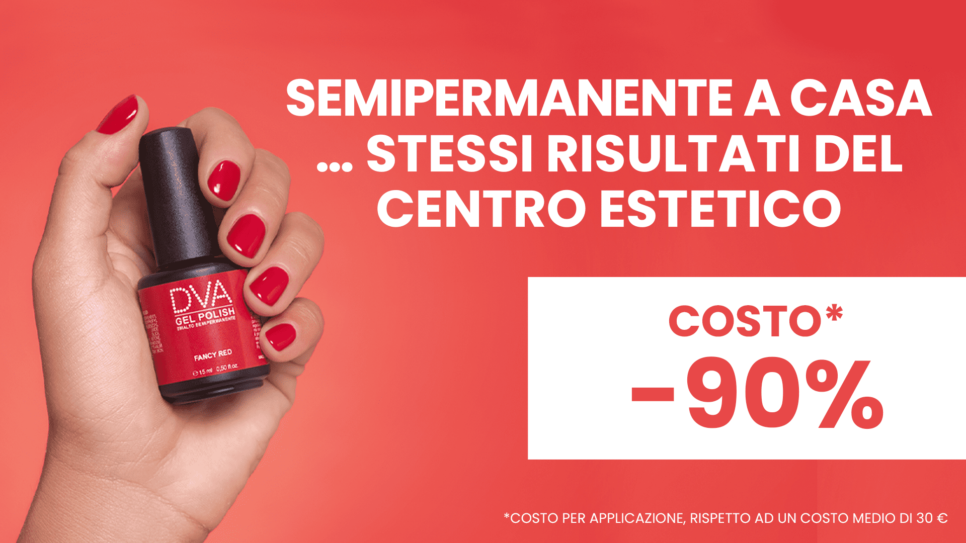 A questo proposito, impossibile non menzionare il Gel Polish Smalto Semipermanente DVA, uno smalto professionale autolivellante, che garantisce un risultato impeccabile fino a 4 settimane! Il suo utilizzo permette di risparmiare fino al 90% su ogni singola applicazione!