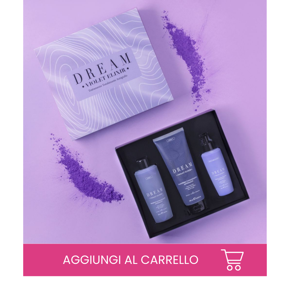 A questo proposito, vale la pena provare il kit di Dream Violet Elixir, composto da shampoo, balsamo, maschera e siero, che con un unico acquisto permette di avere tutti i prodotti necessari.