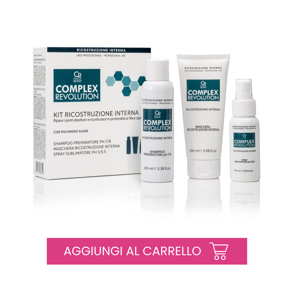 Per iniziare puoi provare la linea Complex Revolution, che ti mette a disposizione 3 soluzioni appositamente studiate per intensificare il processo di riparazione capillare grazie alla loro formulazione arricchita con Polyamino Sugar Condensate, che contribuisce alla ricostruzione dei ponti di solfuro: