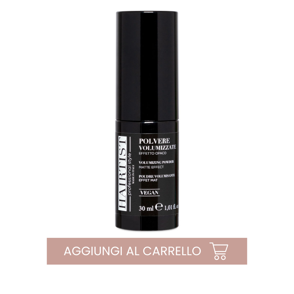 Quando i capelli sono completamente asciutti, è il momento di usare la Polvere Volumizzante Hairtist per dare il tocco finale e il sostegno anti-gravità. Invece di cospargere la polvere su tutta la testa (rischiando di creare spessore visibile), solleva singole ciocche di capelli sulla corona e spruzza una quantità minima di prodotto direttamente alla radice, dove il capello incontra il cuoio capelluto. Massaggia delicatamente con le dita: il calore del massaggio attiverà la polvere, creando un sostegno invisibile e un volume duraturo. Questo è il segreto per dare corpo ai capelli fini!