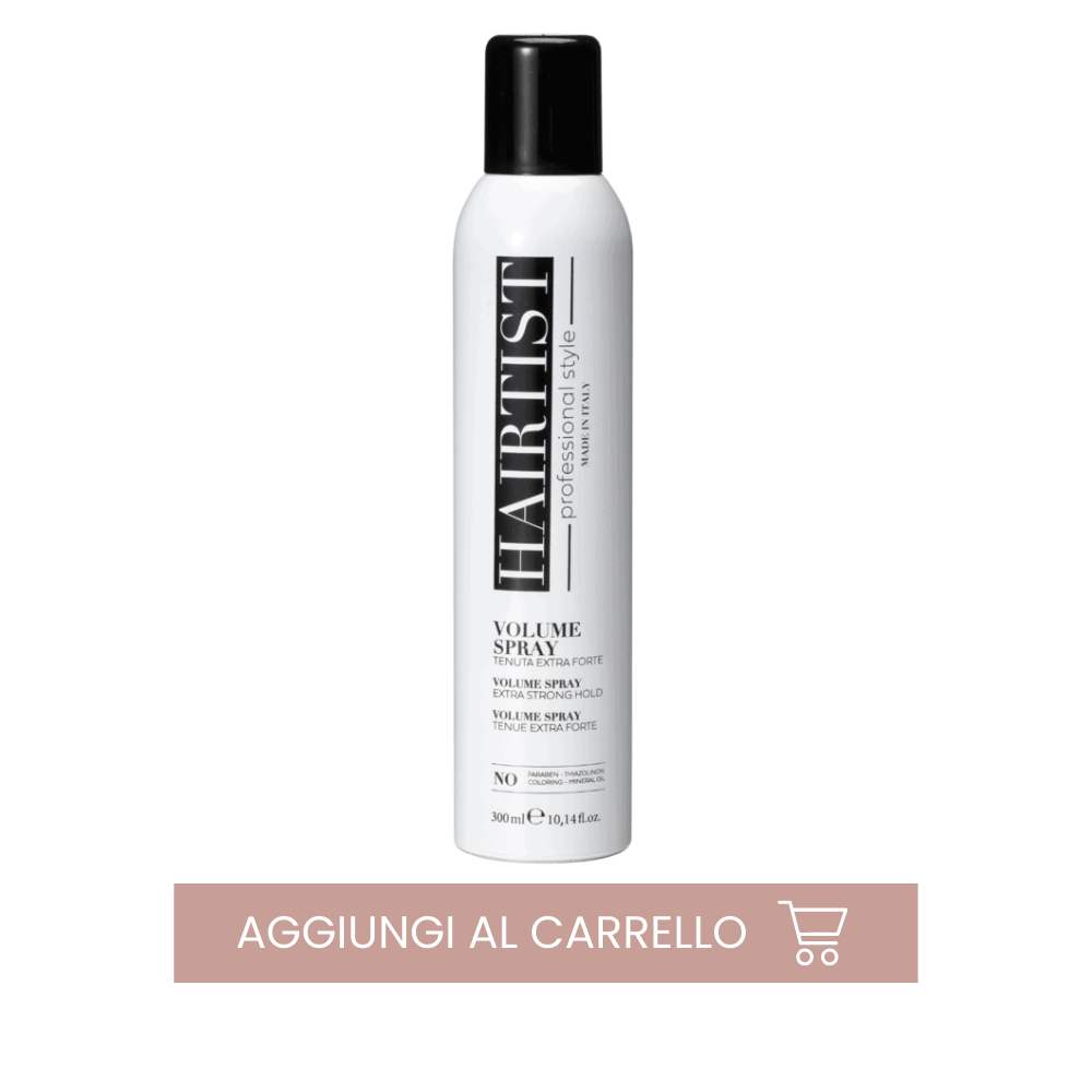 Una volta raggiunto il volume desiderato, è essenziale fissare il look per garantire che l'effetto duri tutto il giorno, anche in presenza di umidità. Il Volume Spray Hairtist è una lacca spray volumizzante a tenuta extra forte che garantisce un controllo a lunga durata ed elevata brillantezza di ogni look, fissando l’acconciatura in modo naturale senza lasciare residui. Si asciuga rapidamente e, grazie alla speciale valvola di erogazione, permette il massimo controllo. La sua formula è anche arricchita con aloe vera, tè verde e pantenolo, noti per le loro proprietà idratanti e antiossidanti, ed è priva di parabeni, coloranti, oli minerali e thiazolinone.