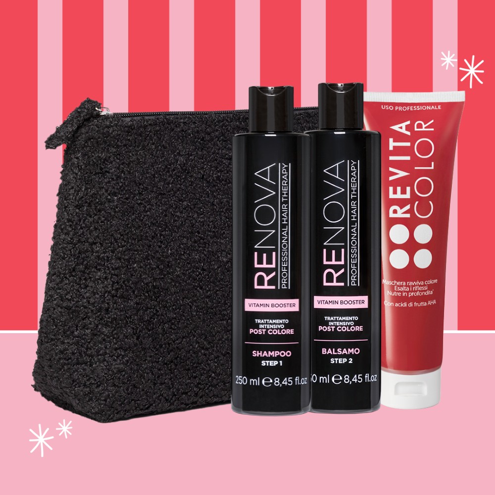 Prenditi cura dei tuoi capello colorati con con lo Shampoo e Balsamo Renova e la Maschera colore Revitacolor. Per un colore brillante e a lunga durata.