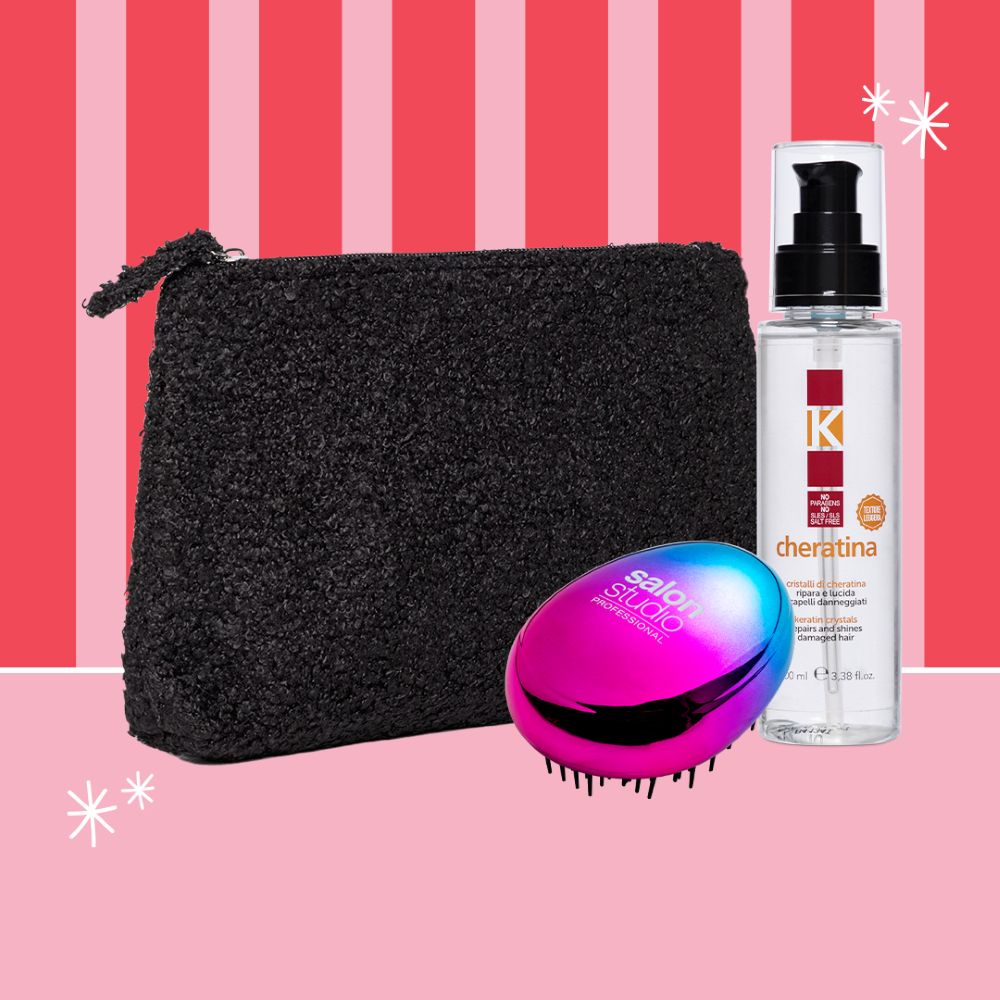 Dona luminosità e morbidezza ai tuoi capelli con i cristalli K-Cheratina e la spazzola Salon Studio metallica.