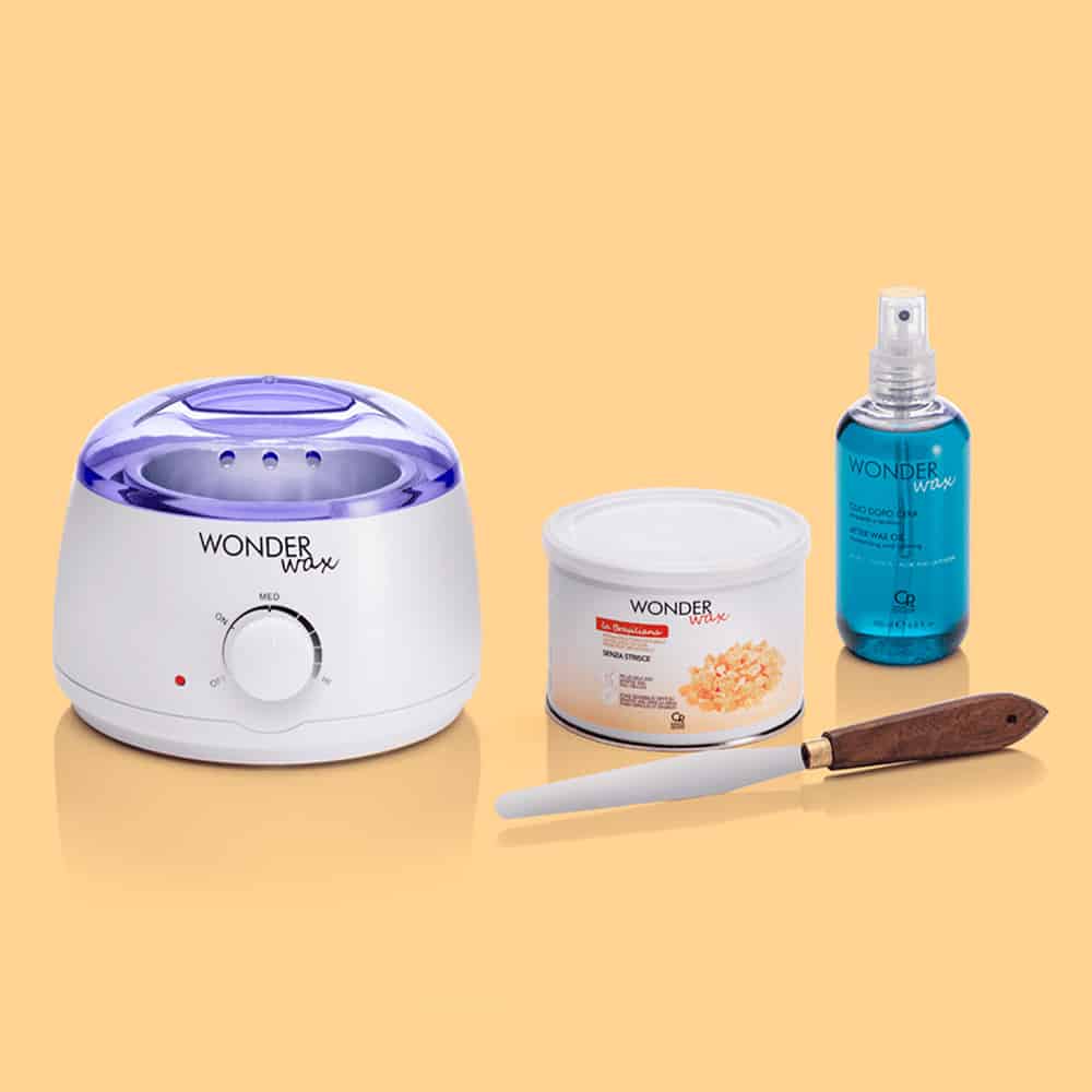 Il set epilazione brasiliana Wonder Wax ti mette a disposizione strumenti e prodotti indicati per raggiungere un risultato a prova di salone: