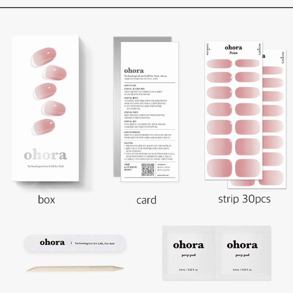 Gli adesivi Ohora sono composti da una morbida pellicola adesiva, realizzati in gel pre-polimerizzato al 60%, facilmente e perfettamente modellabile per adattarsi sulle unghie delle mani. Il loro design unico, leggermente curvato a forma di C permette una facile adesione al letto ungueale. Risultato: effetto unghie naturali.