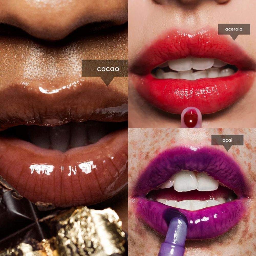 I nostri Peptide Lip Tints in Açaí, Cocoa e Acerola rivoluzionano la tua lip routine con idratazione superfood-powered e colore effortless. Açaí dona un flush berry, Cocoa avvolge con un calore sensuale, Acerola illumina con un coral glow fresco.
